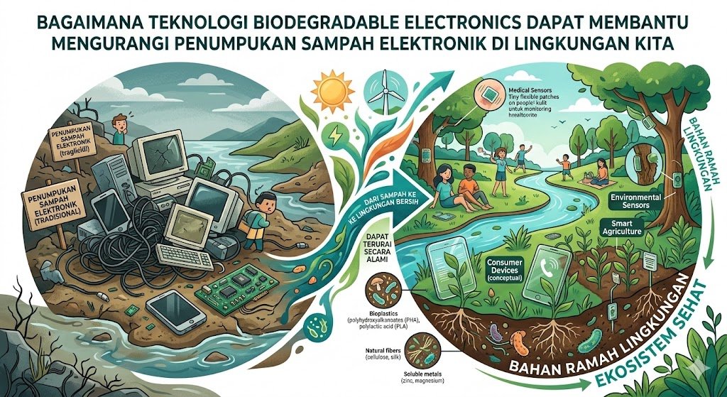 Dunia saat ini sedang menghadapi krisis yang sering kali kasatmata namun sangat berbahaya: ledakan sampah elektronik atau e-waste. Setiap kali kita mengganti ponsel pintar, laptop, atau perangkat rumah tangga lainnya, perangkat lama sering kali berakhir di tempat pembuangan akhir, melepaskan logam berat dan bahan kimia beracun ke dalam tanah dan air. Di tengah tantangan ini, muncul sebuah inovasi revolusioner yang dikenal sebagai biodegradable electronics atau elektronik terurai hayati. Teknologi ini menawarkan visi masa depan di mana perangkat elektronik tidak lagi menjadi beban abadi bagi planet kita, melainkan dapat kembali ke alam tanpa meninggalkan jejak berbahaya.