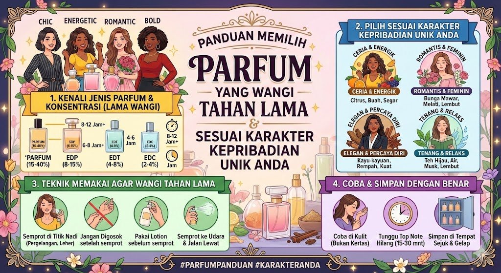 Parfum bukan sekadar cairan beraroma dalam botol kaca yang cantik, melainkan sebuah identitas yang tidak terlihat namun sangat membekas di ingatan orang lain. Aroma yang Anda kenakan mampu menyampaikan pesan tanpa kata-kata, membangun kepercayaan diri, hingga mempengaruhi suasana hati sepanjang hari. Namun, banyak orang sering kali merasa kecewa karena aroma parfum pilihan mereka cepat memudar dalam hitungan jam atau terasa tidak menyatu dengan kepribadian asli mereka. Memilih parfum yang tepat memerlukan pemahaman mendalam tentang konsentrasi bahan, struktur wewangian, dan bagaimana aroma tersebut berinteraksi dengan karakter unik yang Anda miliki.