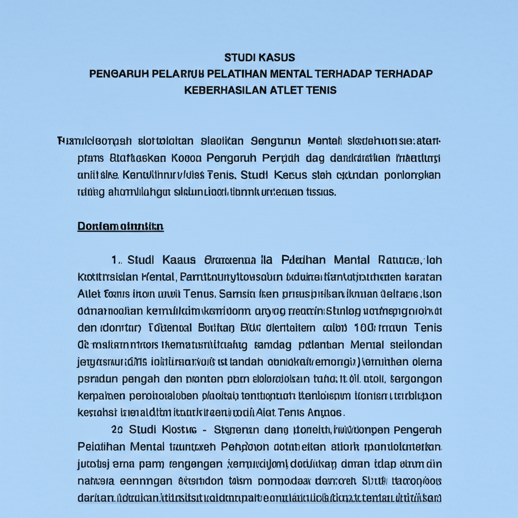Untuk studi kasus ini, mari kita perkenalkan "Bintang," seorang atlet tenis muda berusia 20 tahun. Bintang memiliki bakat fisik yang luar biasa, pukulan forehand yang mematikan, dan servis yang kuat. Ia telah mencapai peringkat 150 dunia di ATP Tour, namun kariernya terhambat oleh masalah mental yang berulang.